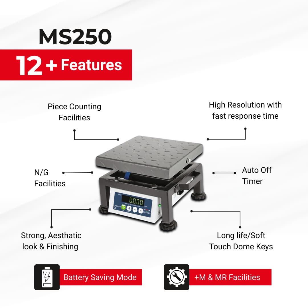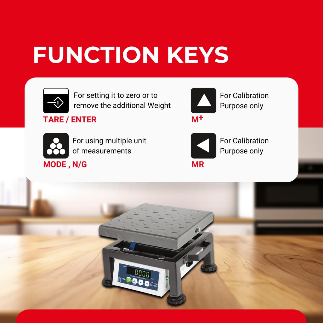 - Piece counting, tare, unit conversion, M+ and MR functions